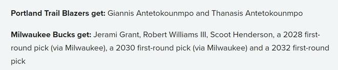 雄鹿得到:格兰特+罗威+亨德森+28年首轮+30年首轮+32年首轮。