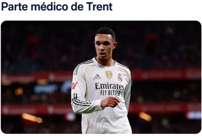 在本轮皇马3-0击败毕尔巴鄂的西甲比赛中,阿诺德首发出场并助攻姆巴佩进球。但在比赛第54分钟,阿诺德传球后疑似崴到脚,主动示意换人,阿森西奥替补出场。赛后,皇马官方宣布,阿诺德左腿股四头肌前直肌受伤,具体恢复情况有待进一步观察。据科贝电台消息,阿诺德预计伤缺2个月时间。